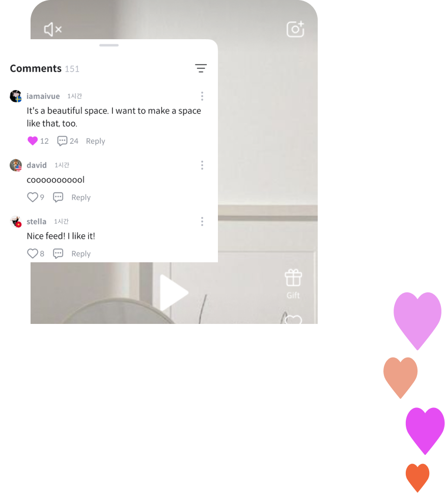 추천 친구 기능으로 다양한 국가의 친구들을 만나보고 소통할 수 있습니다.