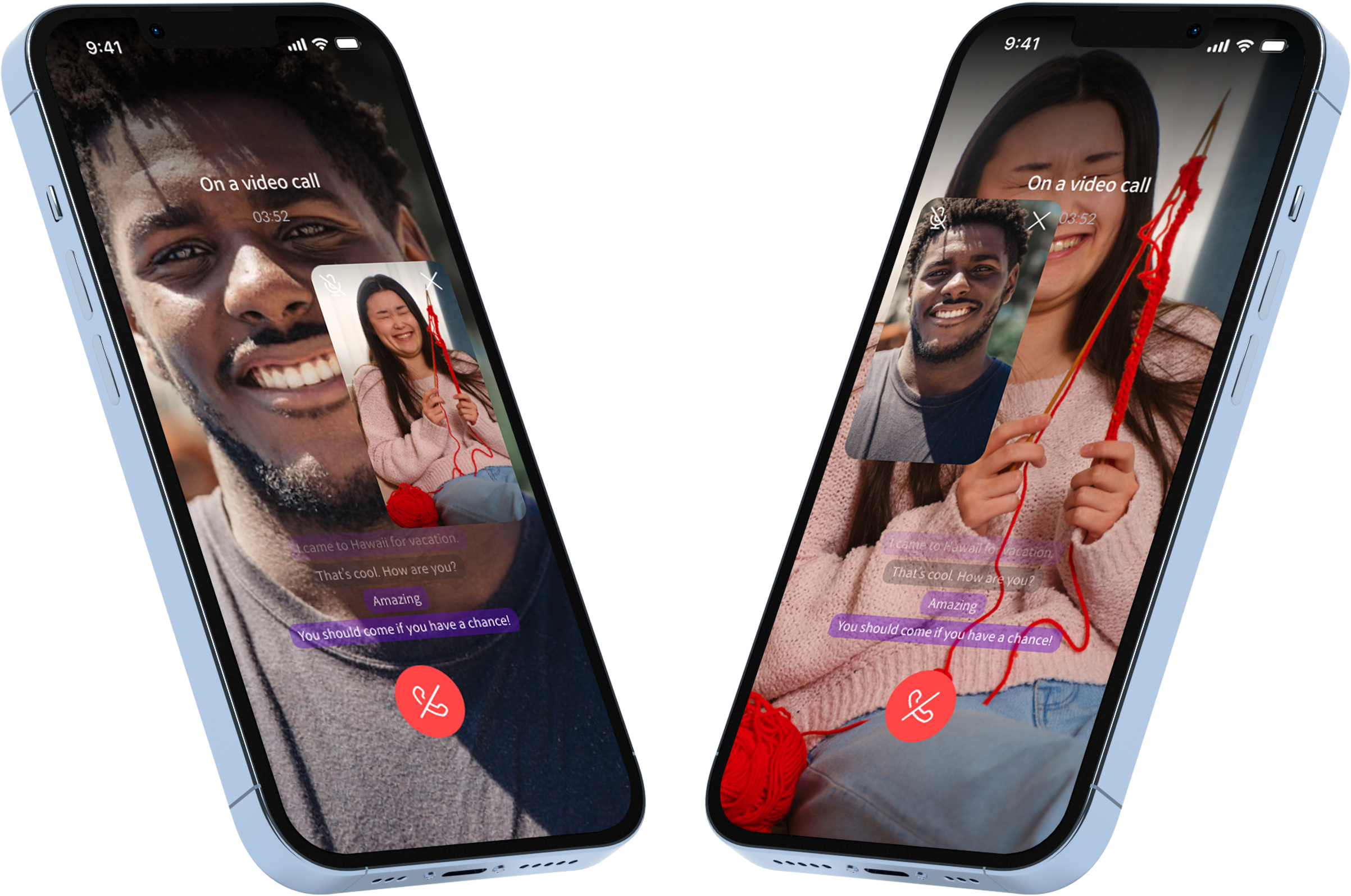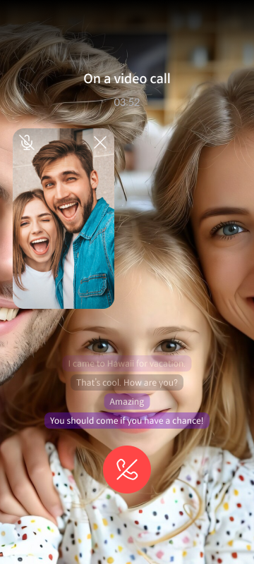 영상통화를 할 때에도 아이뷰가 AI탑재 실시간 번역 시스템을 활용하여 소통이 쉽도록 도와드려요.